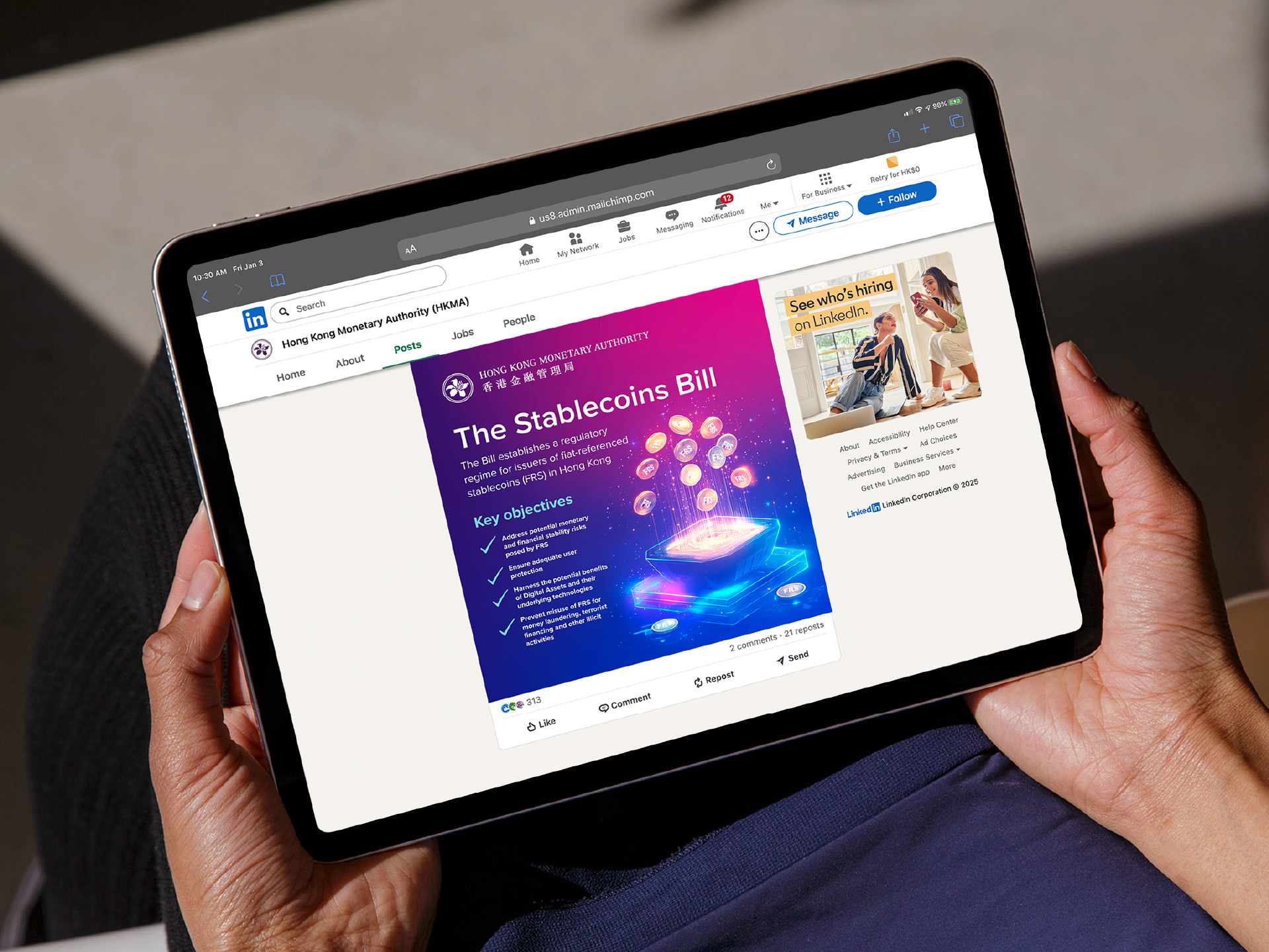 Throughout a year-long retainer with the Hong Kong Monetary Authority, I developed a content strategy for LinkedIn posts that leveraged AI-generated imagery to increase engagement and modernize the client’s brand perception. Each post was designed to distill complex financial topics into visually compelling, accessible graphics while adhering to strict corporate identity standards. Regular performance reviews and adaptation of creative tactics ensured content remained relevant and effective across evolving LinkedIn algorithms and audience preferences.