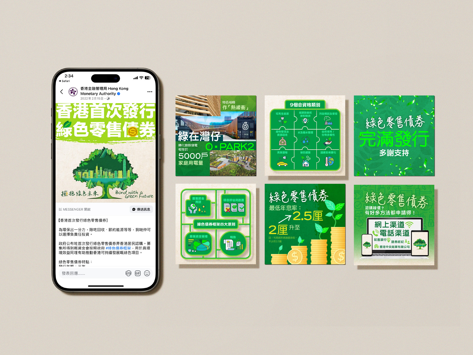 Tasked with launching Hong Kong’s inaugural government green bond, I created a campaign visual identity spanning key visual, digital ads, social posts, print, and newspaper media. The strategy emphasized trust and accessibility, using clean, authoritative visuals and messaging to demystify sustainable finance for a wide audience. I coordinated closely with the client’s communications and compliance teams to ensure regulatory clarity and broad public appeal. The multi-platform rollout was designed to maximize reach and reinforce the government’s leadership in green finance, resulting in extensive media pickup and audience engagement.